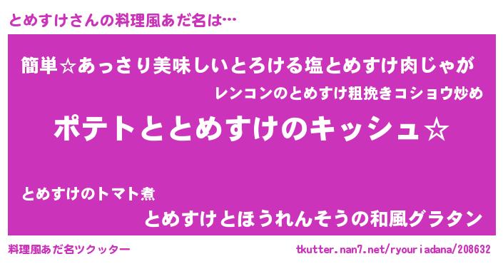 | 胡散臭い通販商品みたいなあだ名 | 『伝統あるサプリメント…その名も「とめすけ」』 |