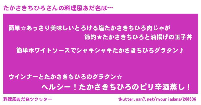 | 欧米人風あだ名 | 『ウサインたかさきちひろ』 |