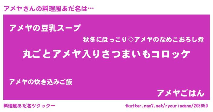 | ポケモン風あだ名 | 『アーメイ』『ヒアメヤ』『アメゴンZ』 |