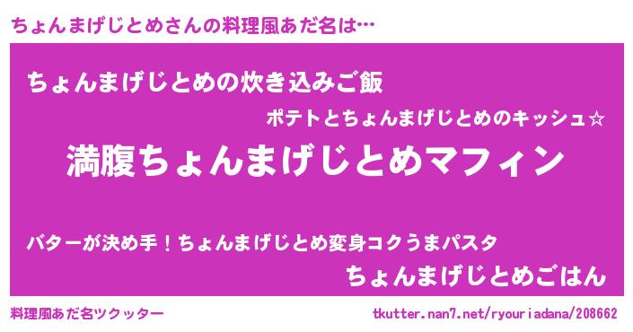 | 意味不明あだ名 | 『永久保存ちょんまげじとめ』 |