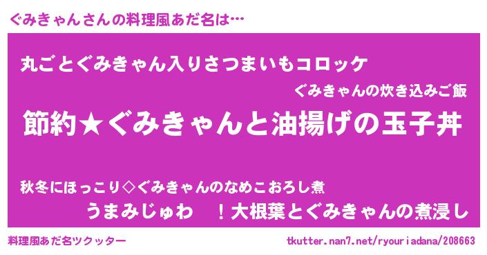 | ヘコむあだ名 | 『ぐみにー』『酢こんぶ』『ぐみお』 |