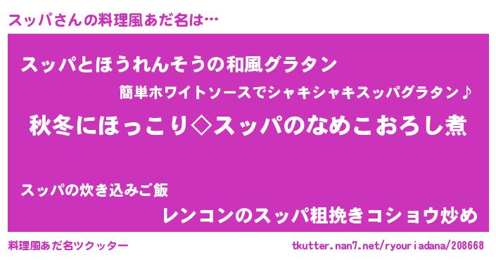 | 意味不明あだ名 | 『ニラ科スッパ属』『自称スッパ』 |