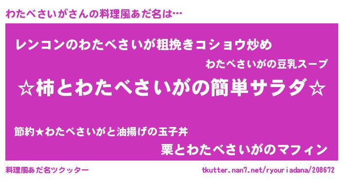 | ピコ太郎風あだ名 | 『ワタ六郎』『ワコ二郎』『ピワ次郎』 |