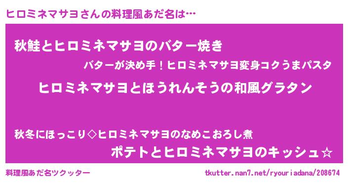 | ヘコむあだ名 | 『ヒロミネマサヨ(苦笑)』『ヒロを』 |