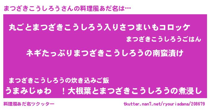 | ピコ太郎風あだ名 | 『マコ三郎』『ピマ二郎』『マツ二郎』 |