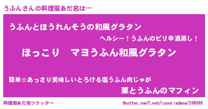 | 意味不明あだ名 | 『住所不定無職うふん(8歳)』『自称うふん』 |