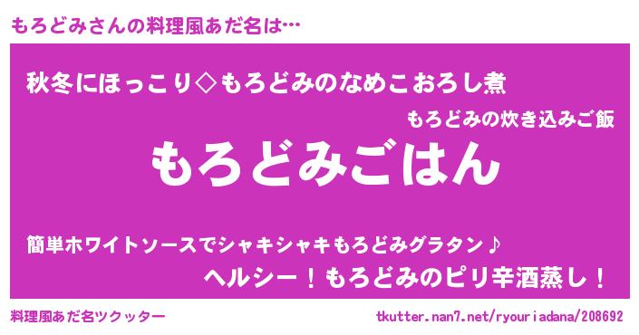 | 胡散臭い通販商品みたいなあだ名 | 『テレビで話題のアガリクス…その名も「もろどみ」』 |