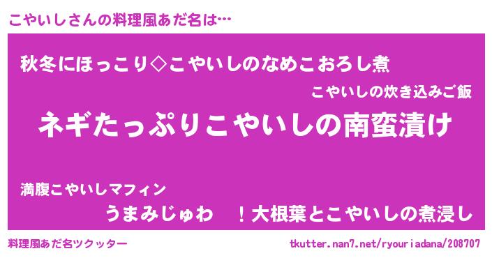 | ヘコむあだ名 | 『こやふぇ~』『なまこ酢』 |