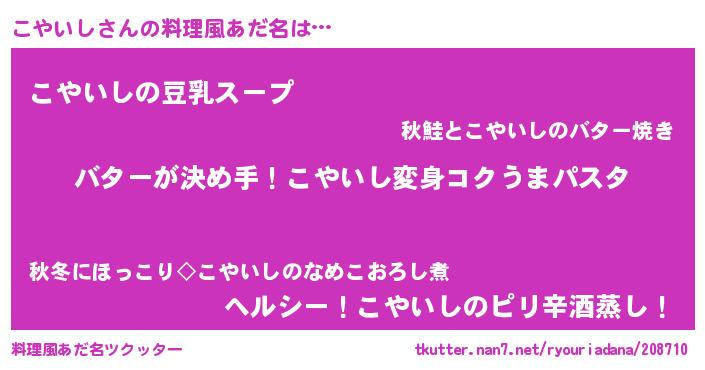 | ピコ太郎風あだ名 | 『ココ太郎』『コヤ四郎』『ピココ郎』 |