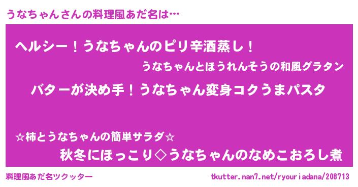 | 男性向けラノベタイトル風あだ名 | 『おまえをオタクにしてやるから、俺をうなちゃんにしてくれ! 』 |