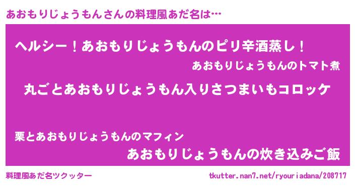 | 胡散臭い通販商品みたいなあだ名 | 『世界中を虜にした世界で10本だけ現存している希少なブランデー…その名も「あおもりじょうもん」』 |