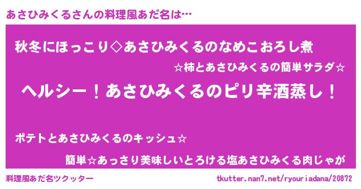 | 胡散臭い通販商品みたいなあだ名 | 『テレビで話題の高麗人参…その名も「あさひみくる」』 |