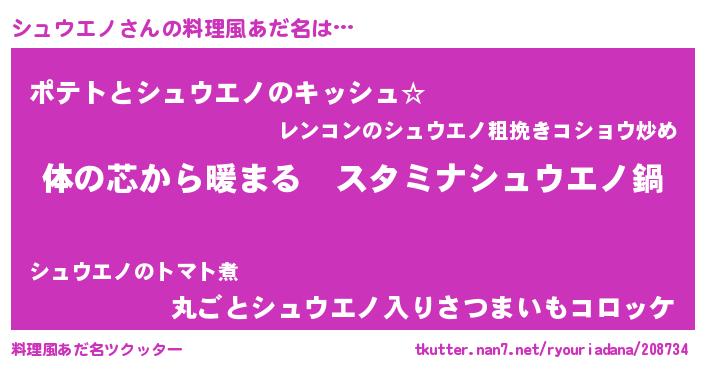 | 欧米人風あだ名 | 『シュウエノクリステル』 |