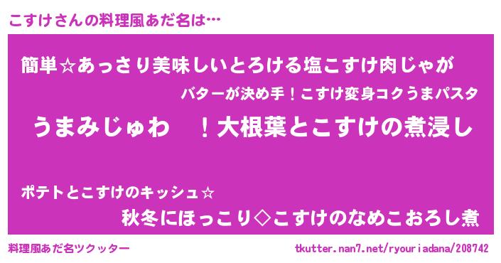 | 女子向けラノベタイトル風あだ名 | 『こすけの婚約者』『こすけ恋絵巻』 |