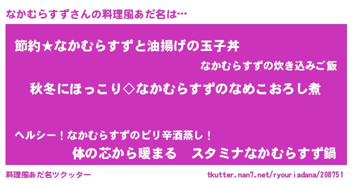 | 男性向けラノベタイトル風あだ名 | 『なかむらすずに滅ぼされるだけの簡単なお仕事です』 |