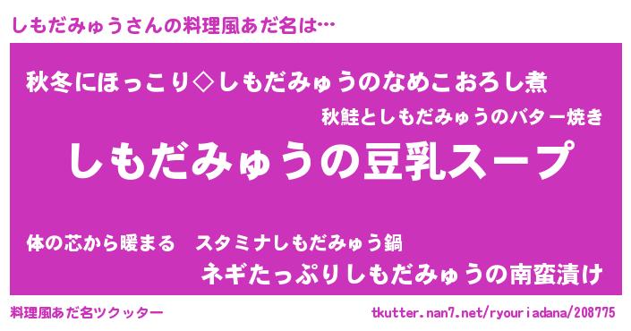 | 胡散臭い通販商品みたいなあだ名 | 『信頼と実績のネックレス…その名も「しもだみゅう」』 |