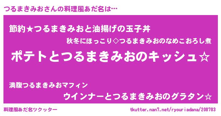| 男性向けラノベタイトル風あだ名 | 『つるまきみおの嫁は女の子じゃないと思った?』 |