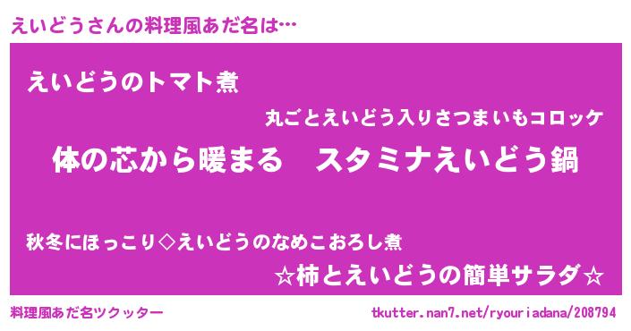 | 意味不明あだ名 | 『えいどうフォーエバー』『自称えいどう』 |