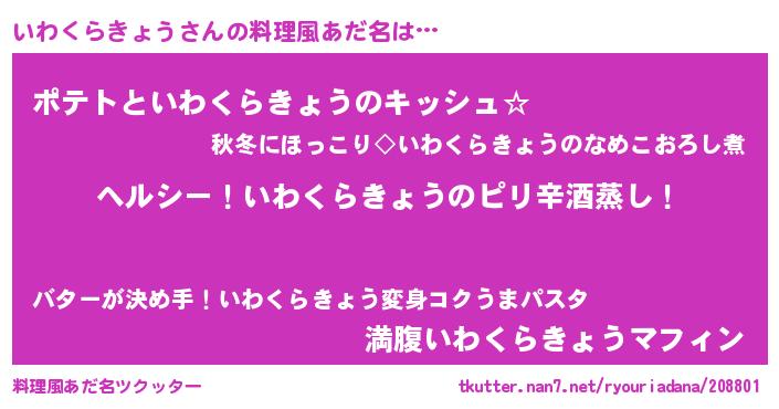| 意味不明あだ名 | 『自称いわくらきょう』 |