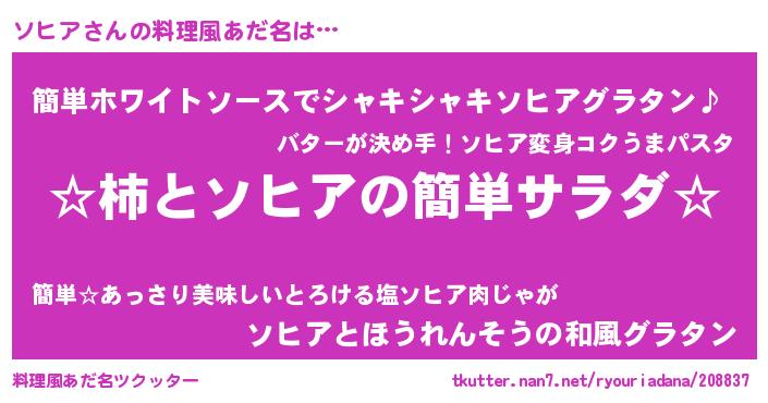 | ヘコむあだ名 | 『ソヒっ子』『ソヒア(爆)』『牛乳』 |