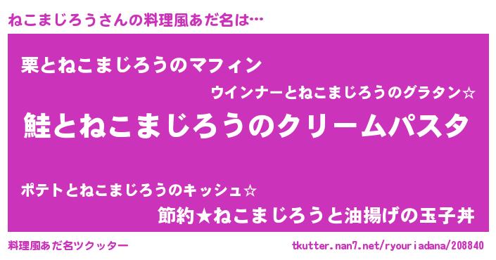 | 女子向けラノベタイトル風あだ名 | 『死神ねこまじろうの再婚』 |