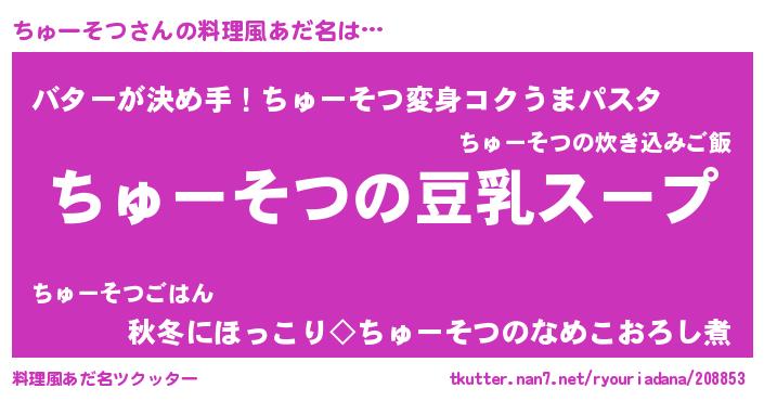 | 胡散臭い通販商品みたいなあだ名 | 『信頼と実績のサプリメント…その名も「ちゅーそつ」』 |