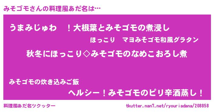 | 意味不明あだ名 | 『みそゴモフォーエバー』『自称みそゴモ』 |