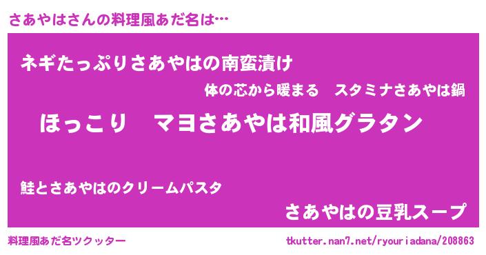 | 意味不明あだ名 | 『住所不定無職さあやは(74歳)』 |