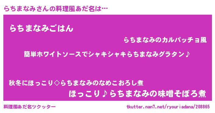 | 意味不明あだ名 | 『とにかく怪しいらちまなみ』 |