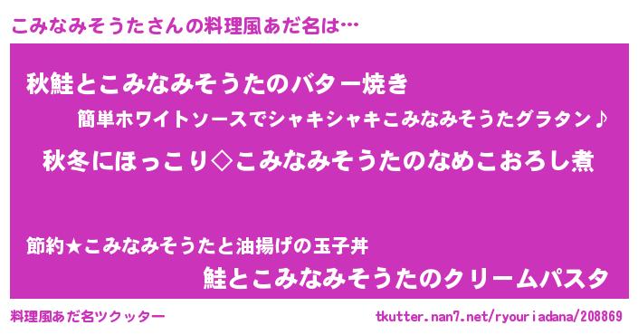 | ヒーロー風カッコイイあだ名 | 『ネオコミナミソウタ』『炎刃騎士コミ』 |