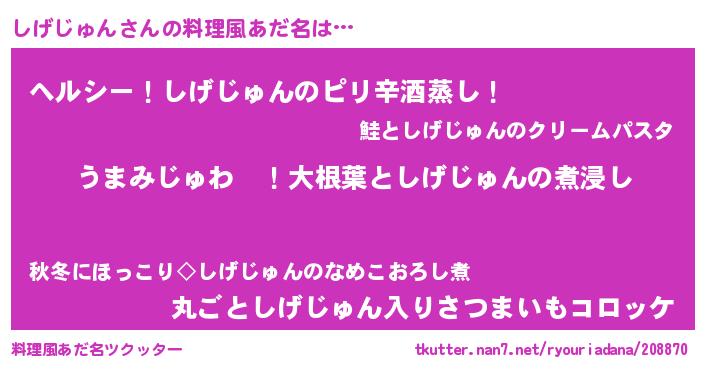 | 意味不明あだ名 | 『しげじゅんフォーエバー』 |
