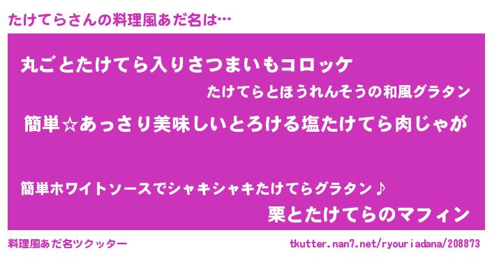 | ヘコむあだ名 | 『たけてら(笑)』『たけぷりん』 |