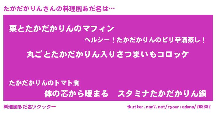 | 男性向けラノベタイトル風あだ名 | 『この素晴らしい世界にたかだかりんを!』 |