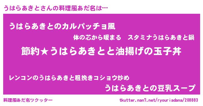 | 胡散臭い通販商品みたいなあだ名 | 『モテモテ間違いなし霊験あらたかなお札…その名も「うはらあきと」』 |