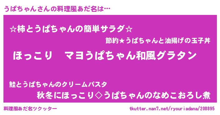 | 意味不明あだ名 | 『住所不定無職うぱちゃん(93歳)』 |