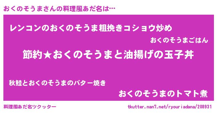 | 肩書あだ名 | 『おくのそうまCEO』『おくのそうま閣下』 |