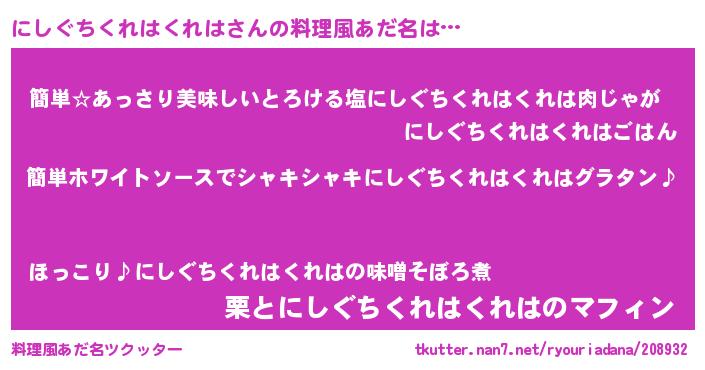 | 意味不明あだ名 | 『とにかく怪しいにしぐちくれはくれは』 |