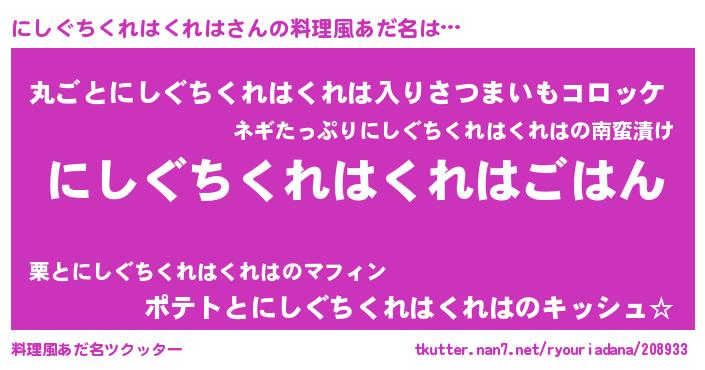| 欧米人風あだ名 | 『トリンドルにしぐちくれはくれは』 |