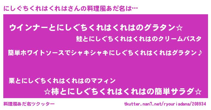| 男性向けラノベタイトル風あだ名 | 『にしぐちくれはくれはの嫁は女の子じゃないと思った?』 |