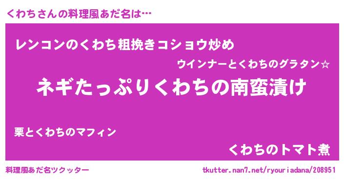 | 意味不明あだ名 | 『ペロリンくわち』『自称くわち』 |