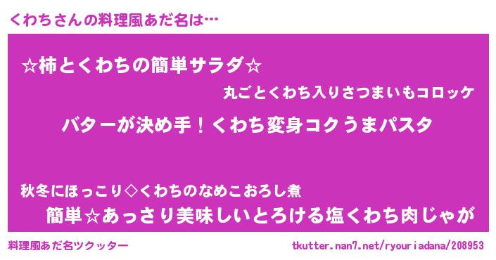 | 欧米人風あだ名 | 『ダニエルくわち』『ダルビッシュくわち』 |