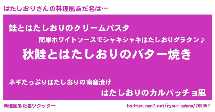 | ヘコむあだ名 | 『はたしおり(小並感)』『はたお』 |