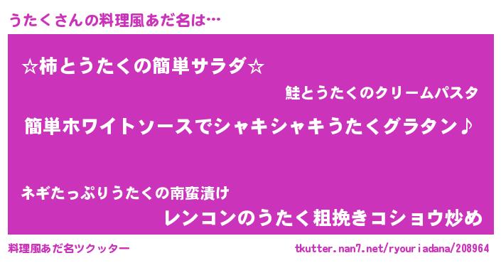 | ピコ太郎風あだ名 | 『ウタ二郎』『ウウ太郎』『ウコ六郎』 |