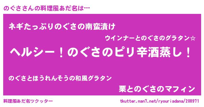 | 男性向けラノベタイトル風あだ名 | 『Re:のぐさから始める異世界生活』 |