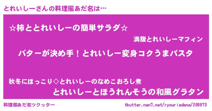 | ヘコむあだ名 | 『とれいしー(苦笑)』『とれぷりん』 |