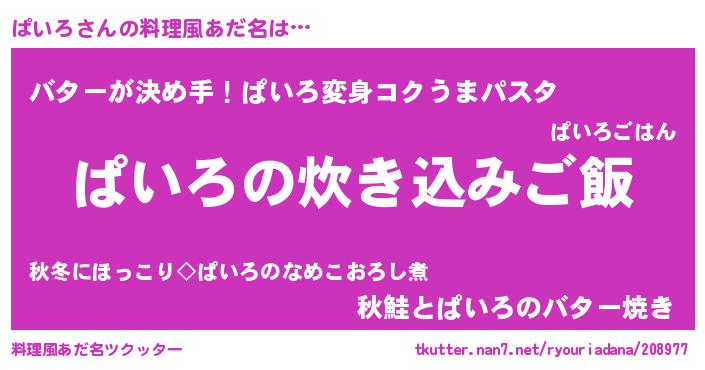 | ヘコむあだ名 | 『ぱいろ(笑)』『ぱいぷりん』 |