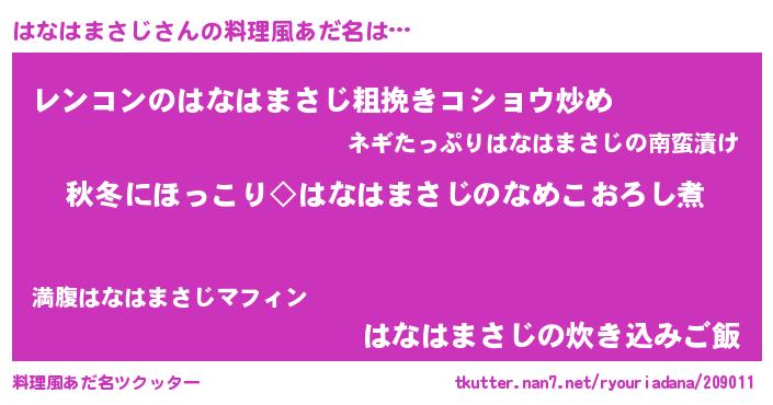 | 男性向けラノベタイトル風あだ名 | 『はなはまさじに滅ぼされるだけの簡単なお仕事です』 |