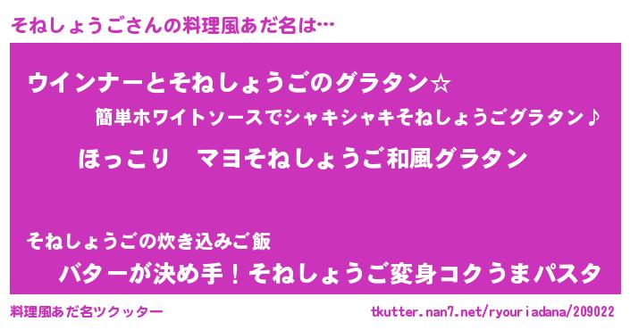 | 男性向けラノベタイトル風あだ名 | 『この素晴らしい世界にそねしょうごを!』 |