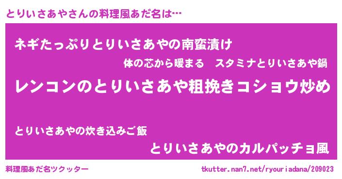 | 肩書あだ名 | 『とりいさあや閣下』『とりいさあやCEO』 |