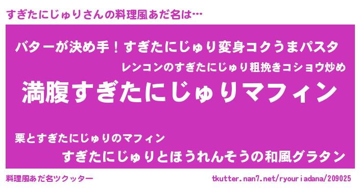 | 男性向けラノベタイトル風あだ名 | 『すぎたにじゅりという概念が存在しない退屈な世界 』 |